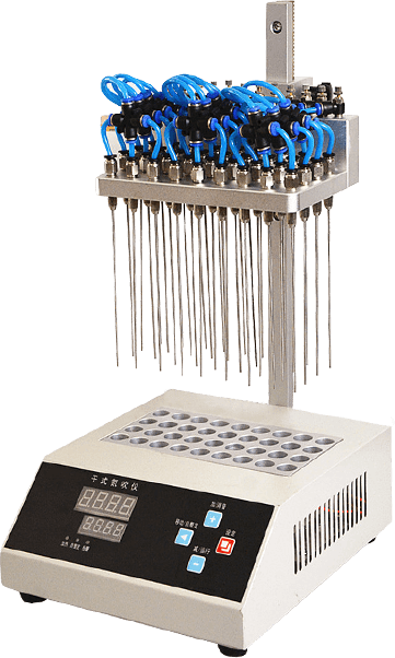 干式氮吹仪是氮气浓缩装置、氮气吹扫仪的简称,主要用于大批量样品在无氧下的浓缩或制备。广泛应用于农残分析、商检、食品、环境、制药、生物制品等行业, 氮吹仪是通过微电脑控制技术,加热是通过高纯铝材料做为加热介质,加热速度快,达到控温更加准确,控温范围广,可以同时处理36组样品。