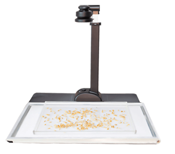 智能考种仪可以测量各种表面光滑的籽粒的数量、千/百粒重与平均粒型(包括长、宽、长宽比、周长、面积),利用图像ORC 识别技术、图像定位、空间转换等技术实现快速识别种子数量及作物性状指标。